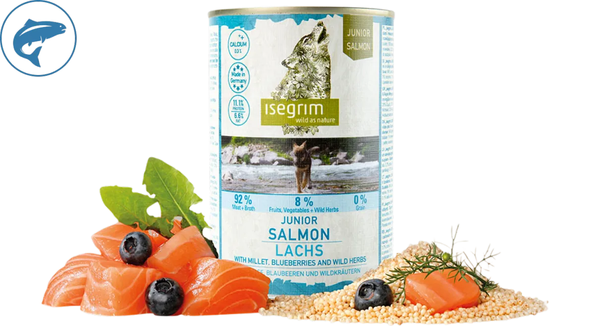Skład tej karmy został specjalnie dostosowany do potrzeb młodych psów. Świeży łosoś dostarcza istotnych kwasów tłuszczowych omega 3 i omega 6, które są bardzo ważne dla utrzymania dobrej kondycji skóry i sierści.