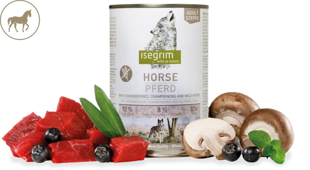 To połączenie w 100% bezpiecznego mięsa końskiego, inspirowane naturalnym stylem życia, jest szczególnie bogate w niezbędne aminokwasy.